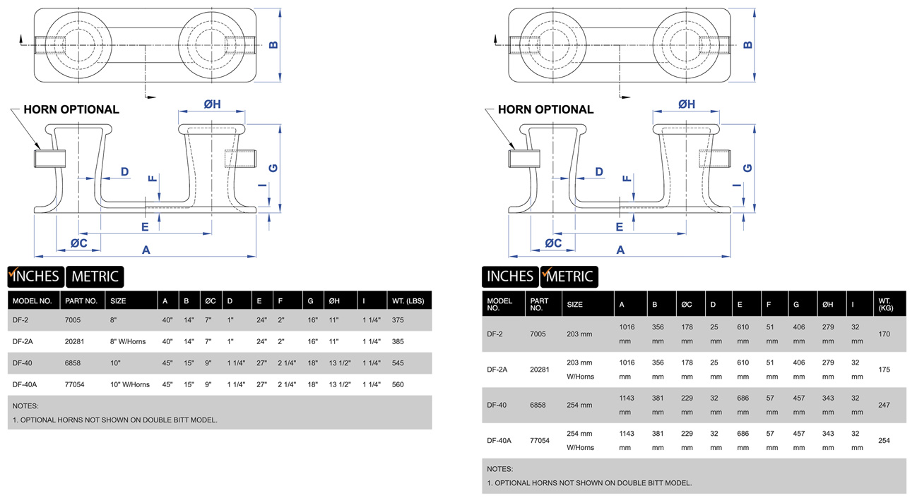 DF-2/DF-2A/DF-40/DF-40A Cast Steel Double Bitt