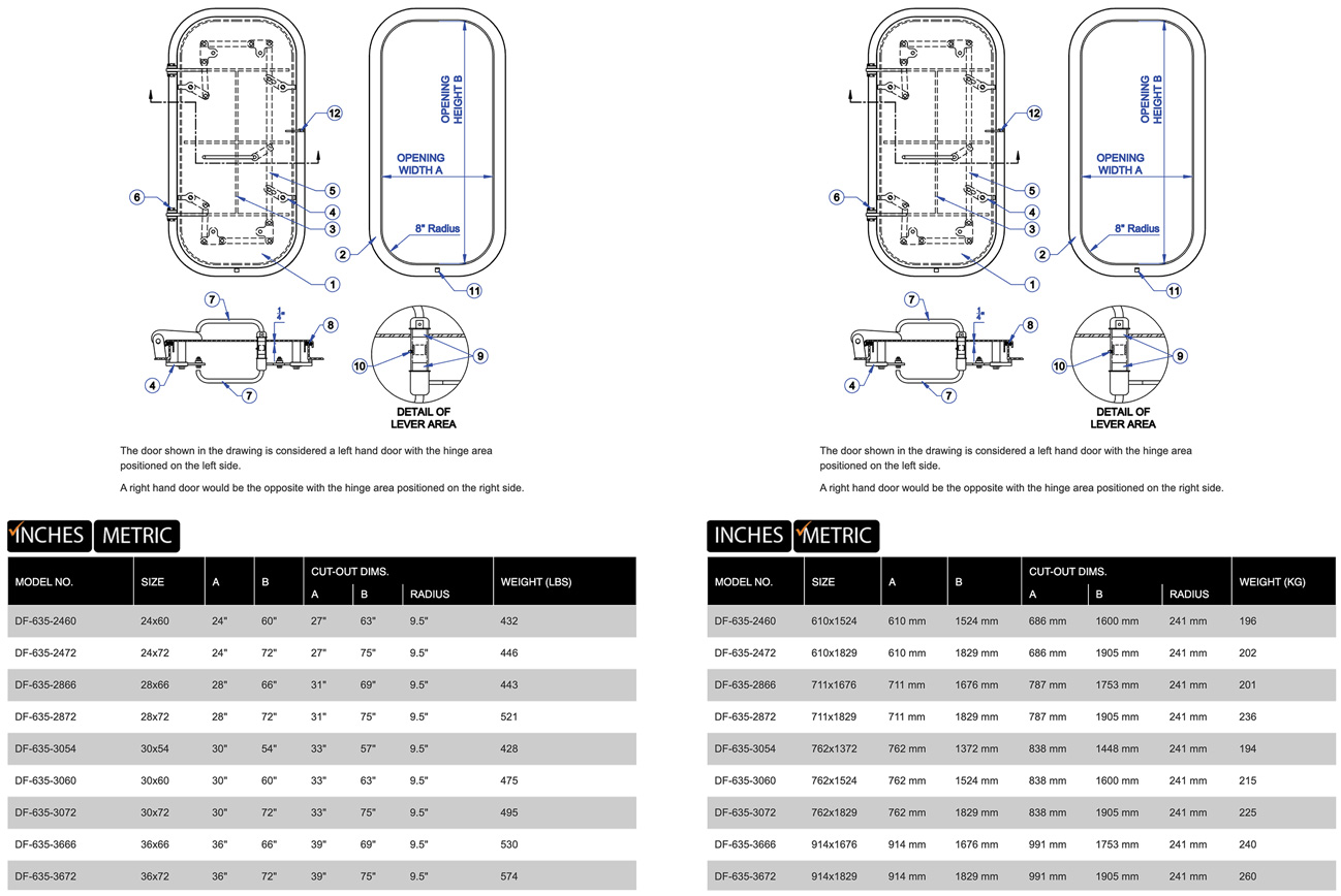 • Doors are suitable for a design head of 22’ (6706 mm).