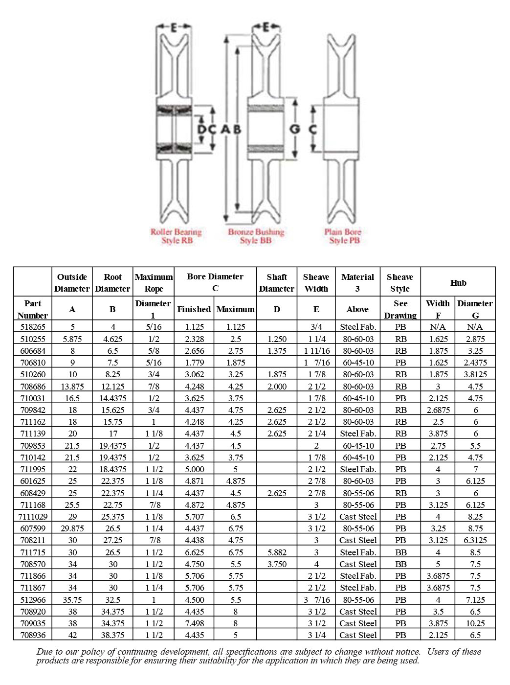 2. Cast sheaves available as cast, not machined.
