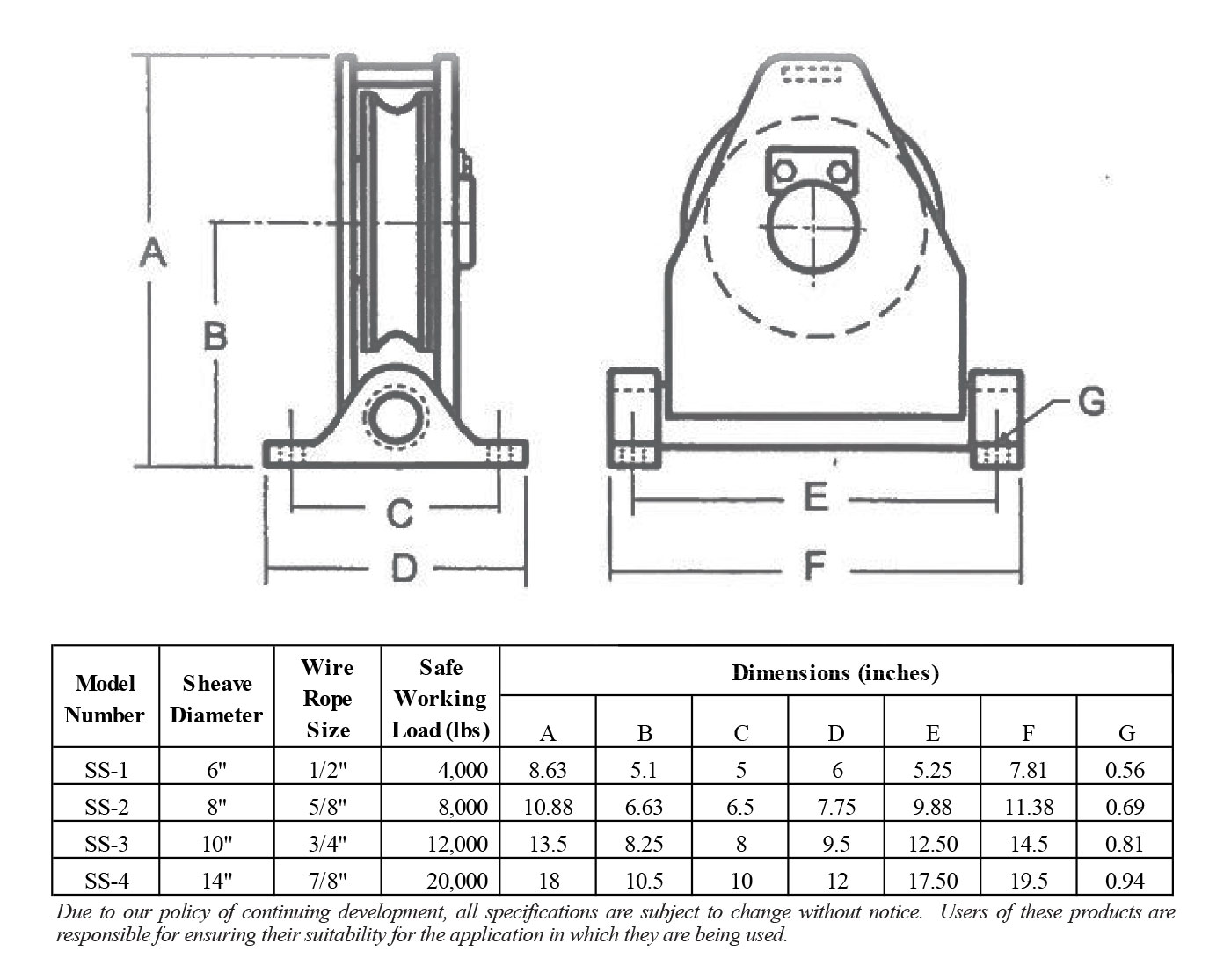 • Greasable bronze sheave bearings