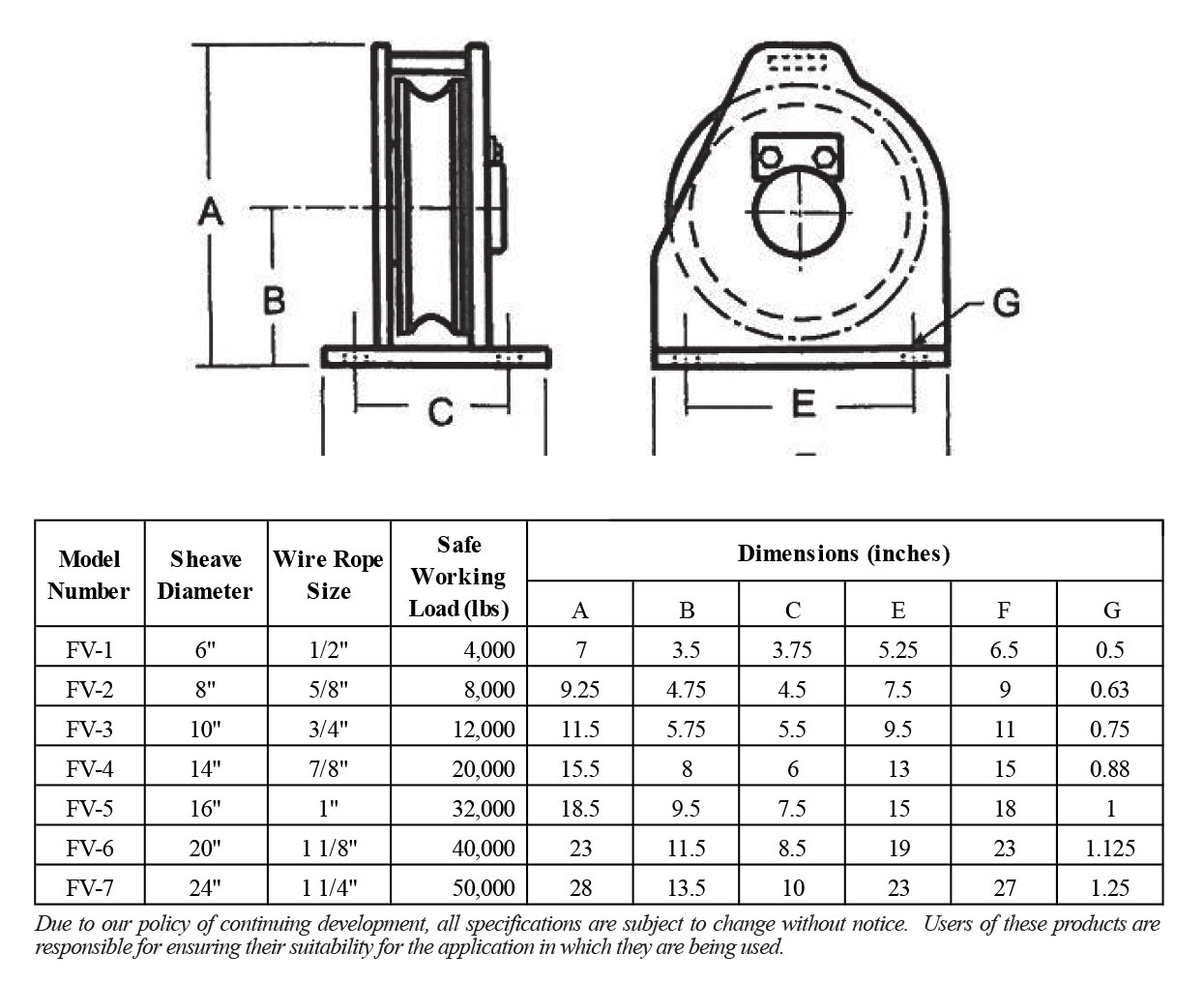 Wintech vertical deflector sheave fairleads are designed to assist in directing wire rope from the winch to the load. Standard fairleads have heavy duty construction and are designed for long life in severe duty applications. Custom configurations are available to suit unique rigging challenges.